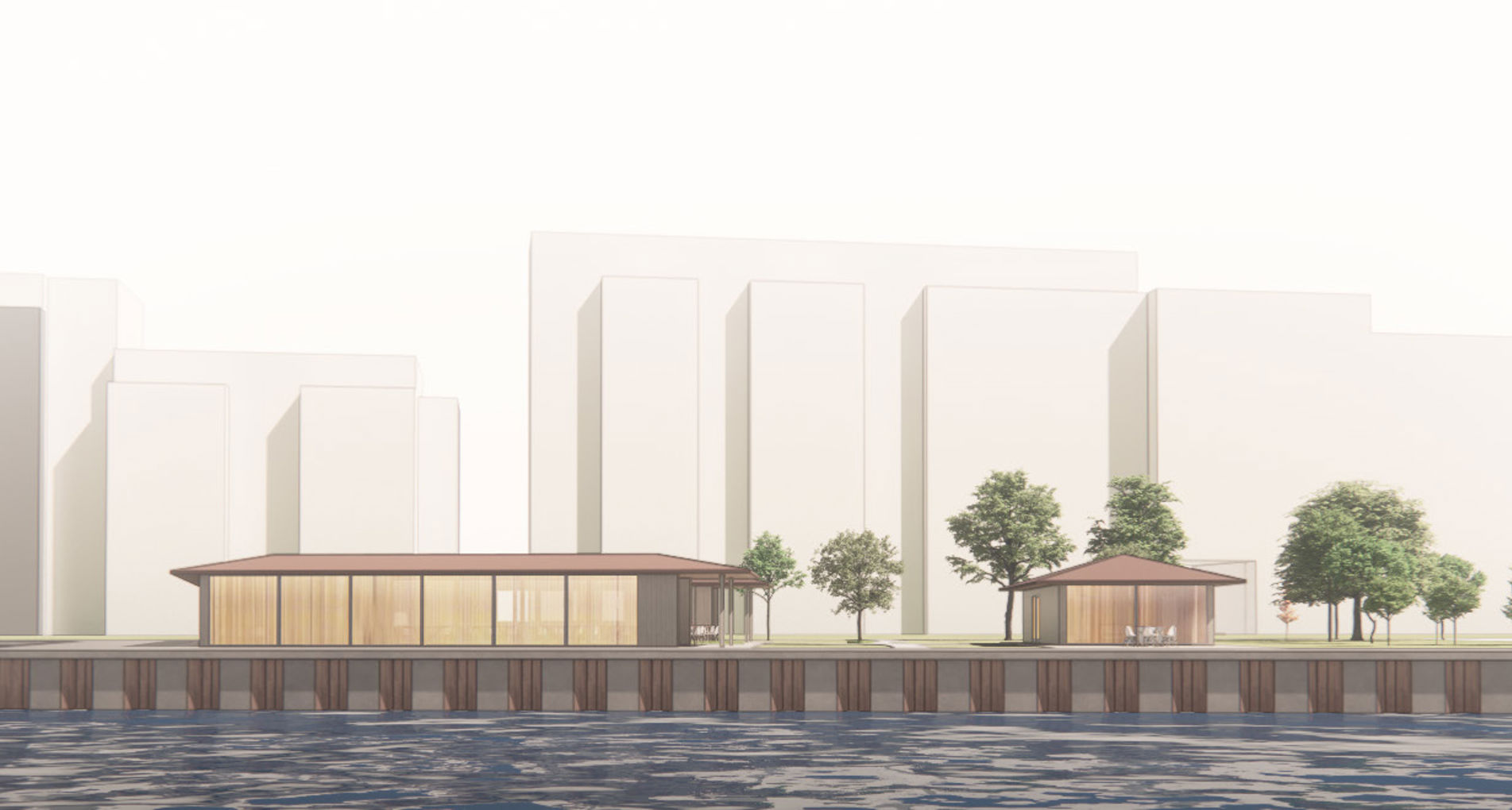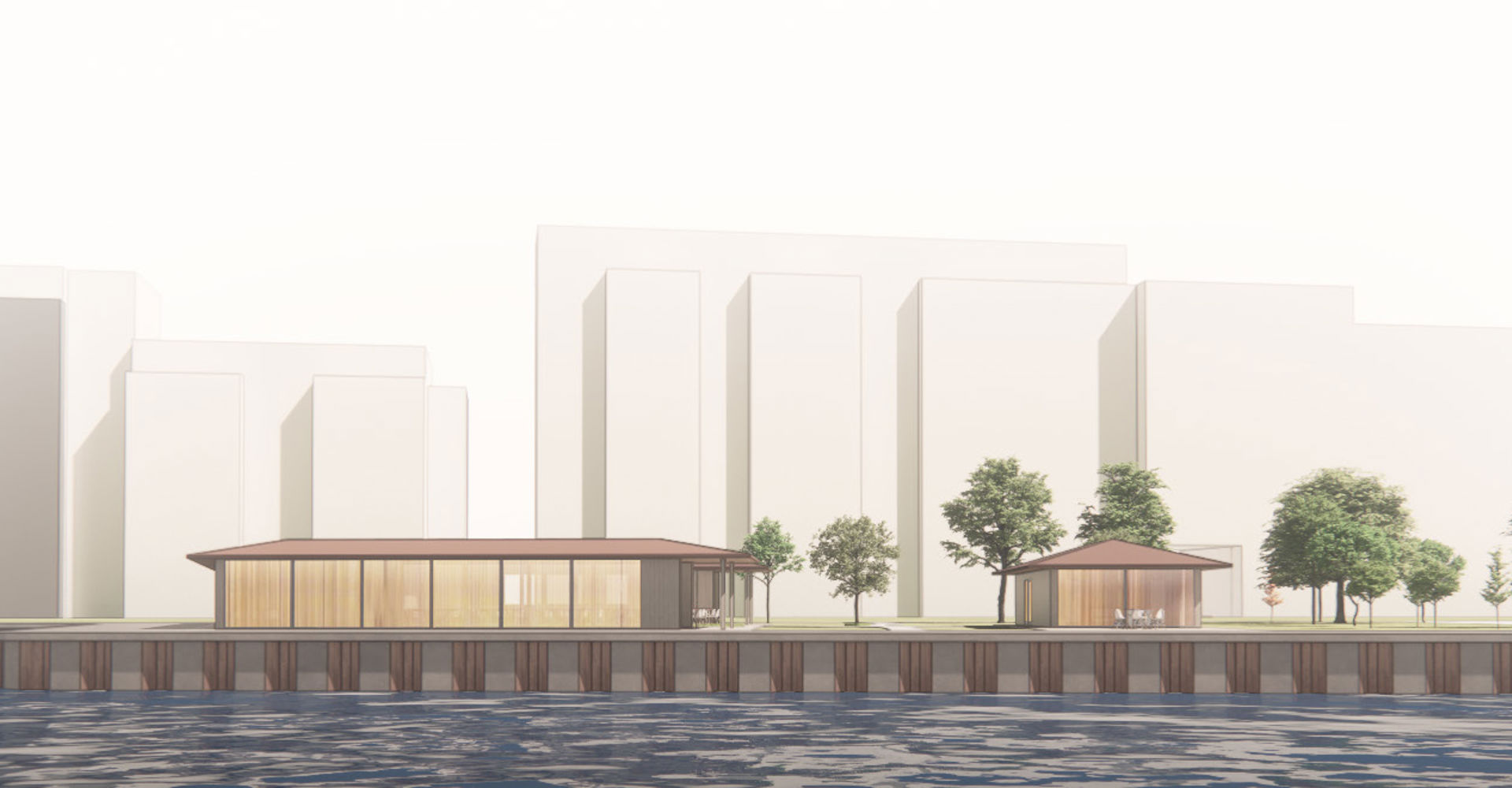 Den ene bygning opføres i en åben hesteskoform og skal rumme restauranten NAM. Den anden fungerer som klubhus for Aalborg Cable Park og skaber nye rammer for vandsport og foreningsliv i området.