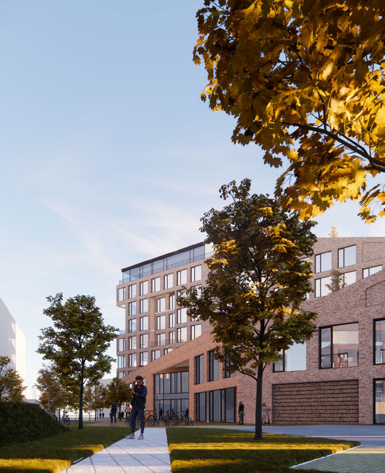 Med fokus på bæredygtighed, kvalitet og arkitektonisk helhed skabes rammerne for både attraktive byrum og inspirerende arbejdsmiljøer. Grønne områder erstatter tidligere parkeringsflader og giver plads til ophold, leg og udeliv – til glæde for både beboere og besøgende.